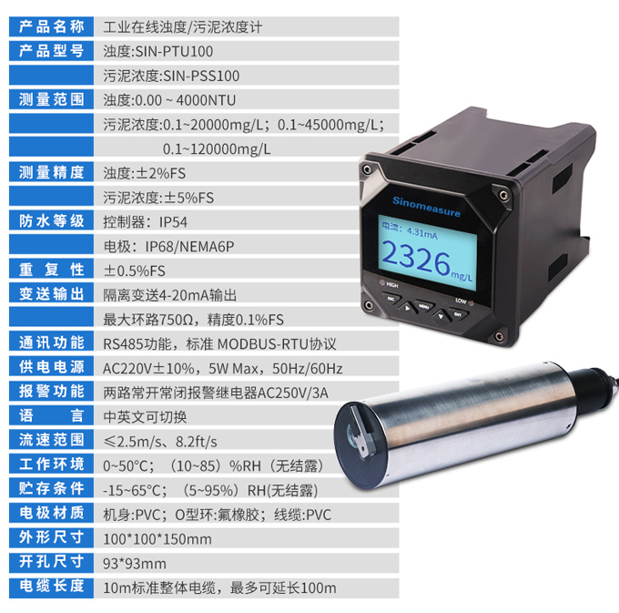 SIN-PTU100在線濁度檢測儀是一款智能在線化學分析儀器之一,基于組合紅外吸收散射光線法的原理,應用ISO7027方法可以連續并精確地測定濁度或污泥濃度。
